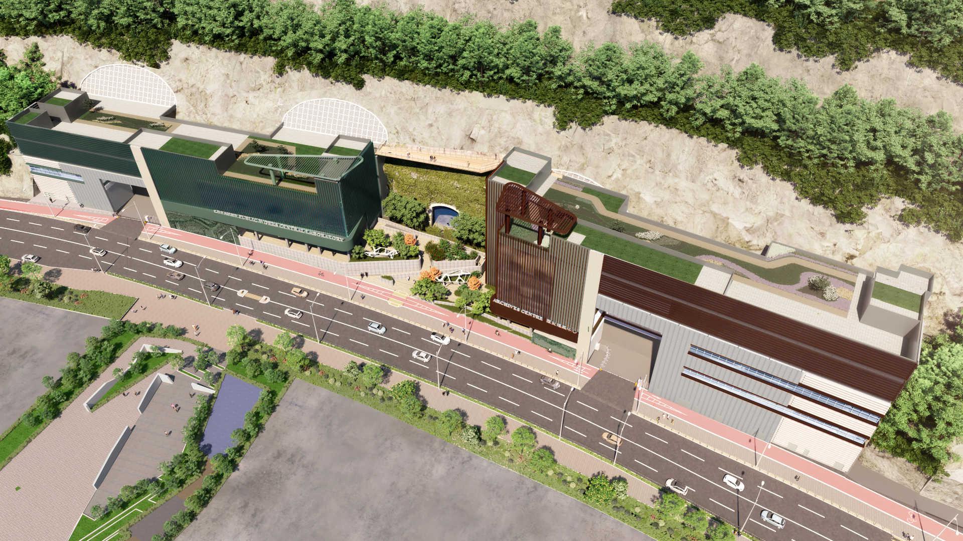 沿石坡而建的觀景台會連接兩棟大樓的天台,讓參觀人士從高處遠眺東九龍,聯繫市區。觀景台的設計會將觀景台融入石坡之中,以提高建築物與自然環境的一致性,並讓使用者俯瞰四周壯麗的景色。